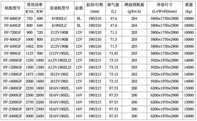 濟柴發電機,濟柴發電機組主要參數